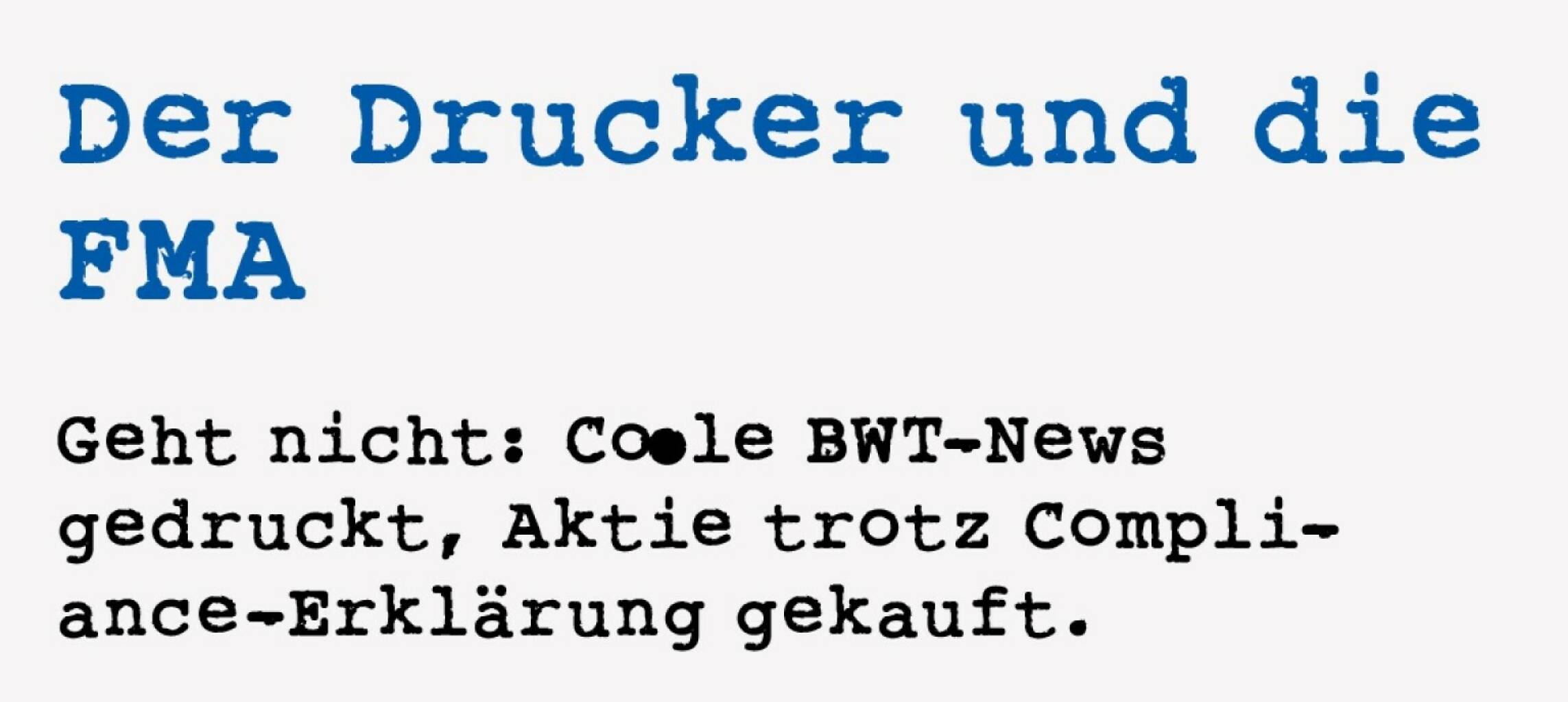 Geht nicht: Coole BWT-News gedruckt, Aktie trotz Compliance-Erklärung gekauft.