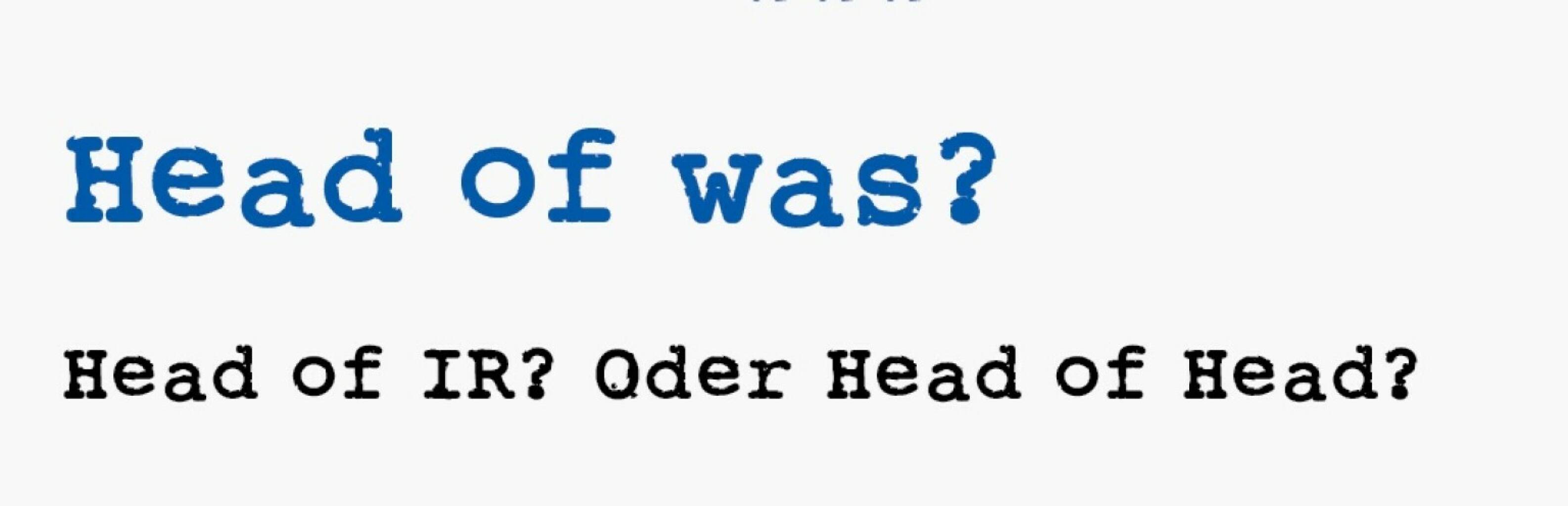 Head of IR? Oder Head of Head?