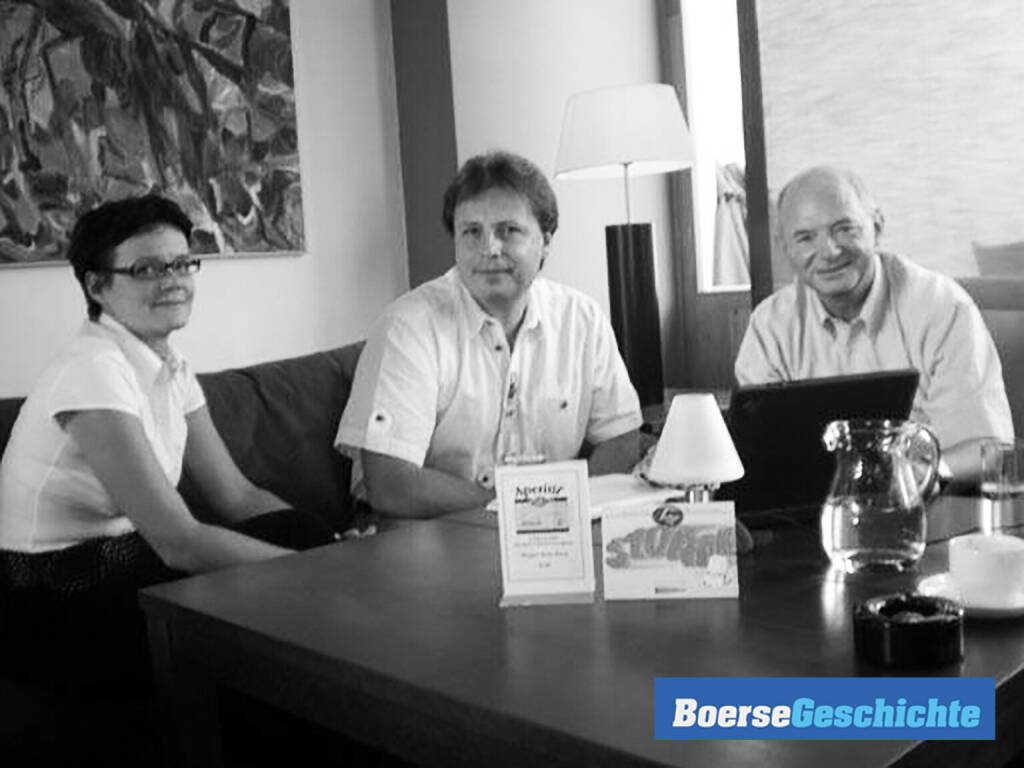 #boersegeschichte 2006: Heike Arbter, Michael Spiss und Katrin Gögele-Celeda (RCB) in der Frühphase der Zertifikate Awards. Das Team sollte künftig Jahr für Jahr abräumen
