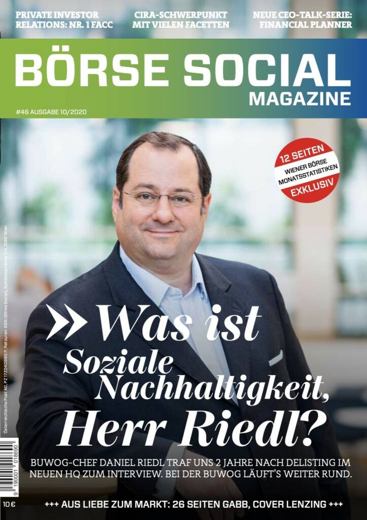 Magazine #46 - Oktober 2020: Buwog-Chef Daniel Riedl besuchten wir in seinem neuen Headquarter zu einem relaxten Talk über Soziale Nachhaltigkeit über den Dächern von Wien. Es sollte nicht ruhig bleiben, wenige Stunden später fanden die Terroranschläge in Wien statt
