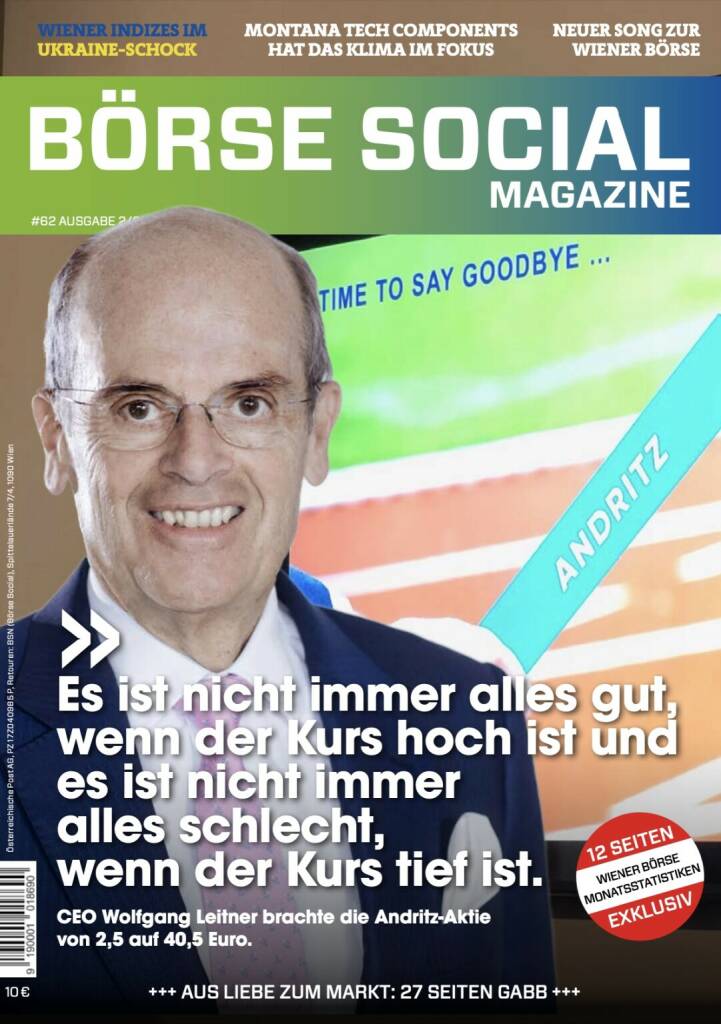Magazine #62 - "Es ist nicht immer alles gut, wenn der Kurs hoch ist und es ist nicht immer alles schlecht, wenn der Kurs tief ist." CEO Wolfgang Leitner brachte die Andritz-Aktie von 2,5 auf 40,5 Euro.